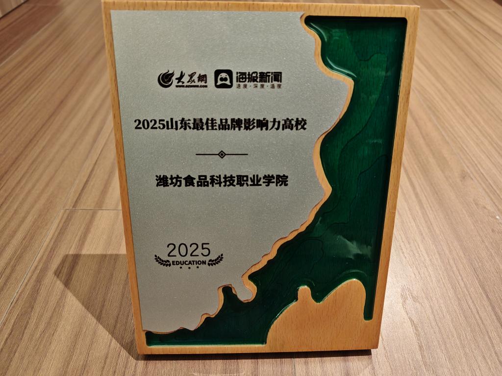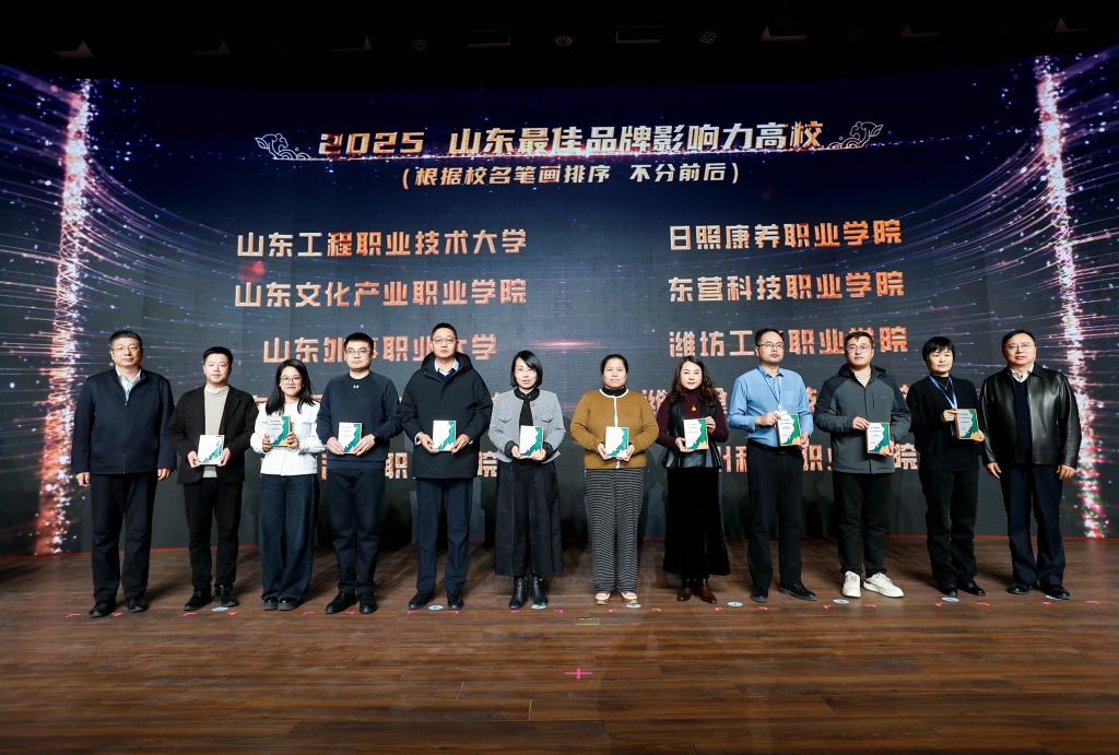 会上发布了2025年度山东高校系列权威榜单,潍坊食品科技职业学院凭借在全媒体平台卓越的品牌传播力与良好的社会声誉,荣获 “2025山东最佳品牌影响力高校” 称号。这一荣誉标志着学校在品牌建设、文化传播及融媒体影响力等方面取得的成果获得了社会与行业的广泛认可。