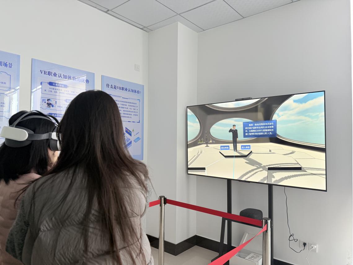 在中心工作人员的引导下,教师们依次体验了职业测评机、AI面试模拟赋能仓、自助刷脸求职一体机、AI简历优化自助终端、VR职业认知体验及就业手续自助办理ATM机等多项智能化就业服务项目。其中,VR职业认知体验给教师们留下了深刻印象。通过虚拟现实技术,学生可以“亲临”各类职业工作场景,沉浸式体验不同岗位的日常任务、技能要求与工作环境,在安全、低成本的虚拟环境中获得直观的职业认知,提升职业兴趣与综合素养。